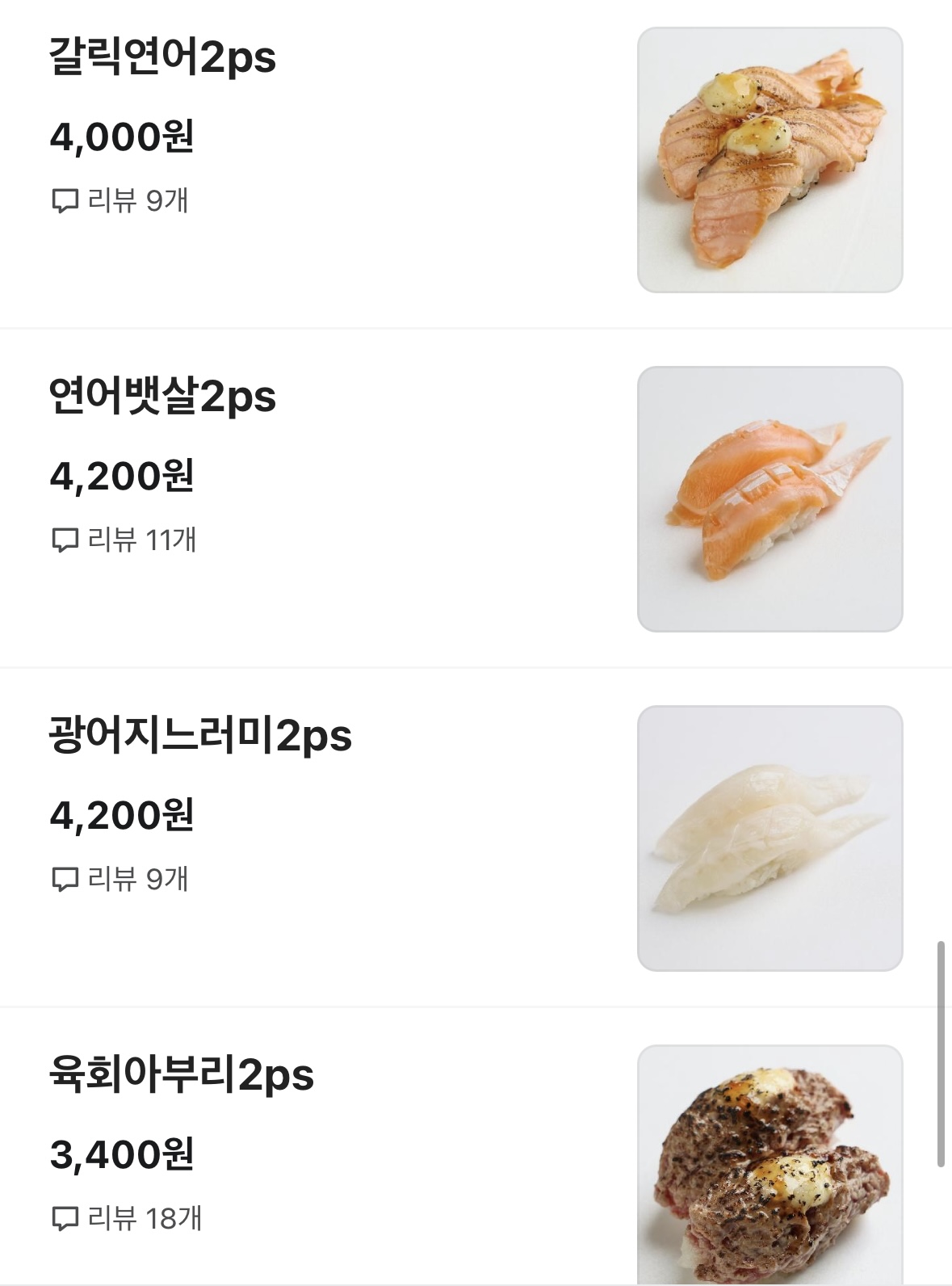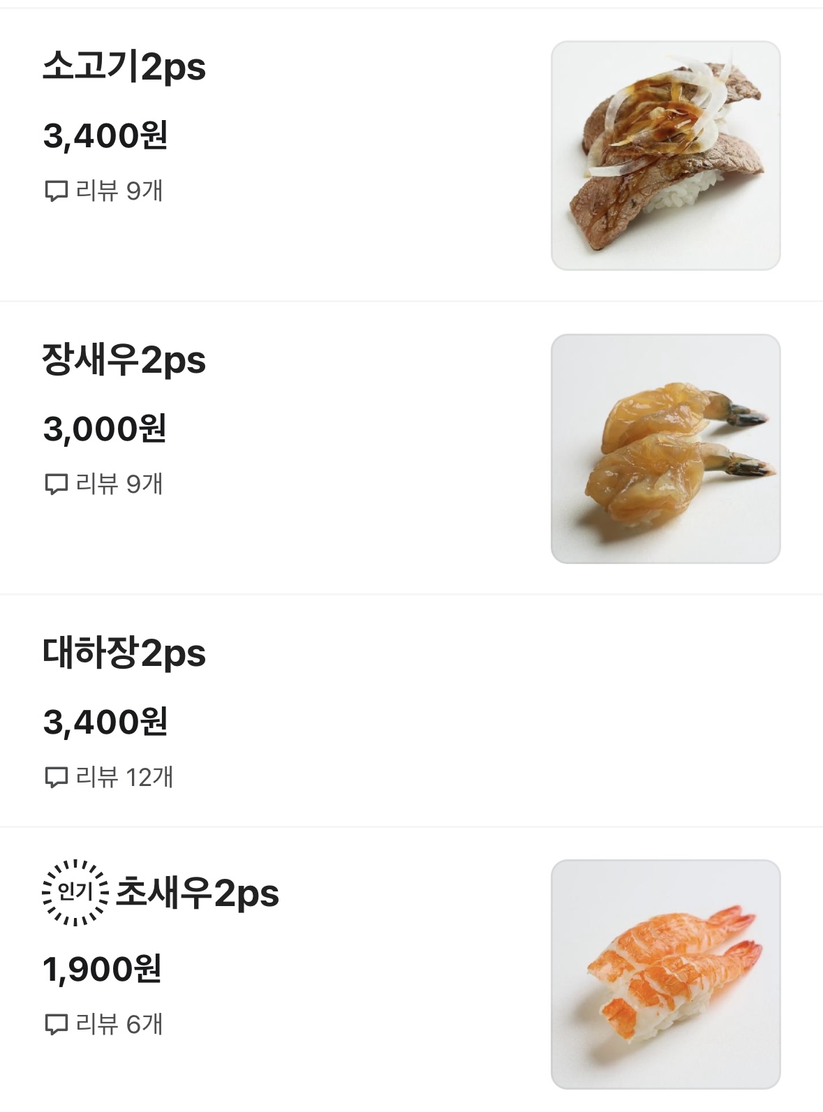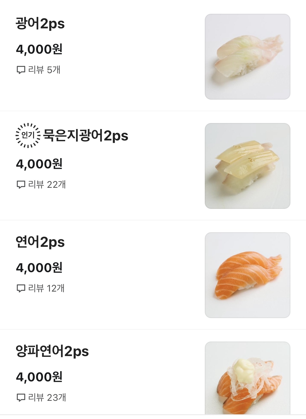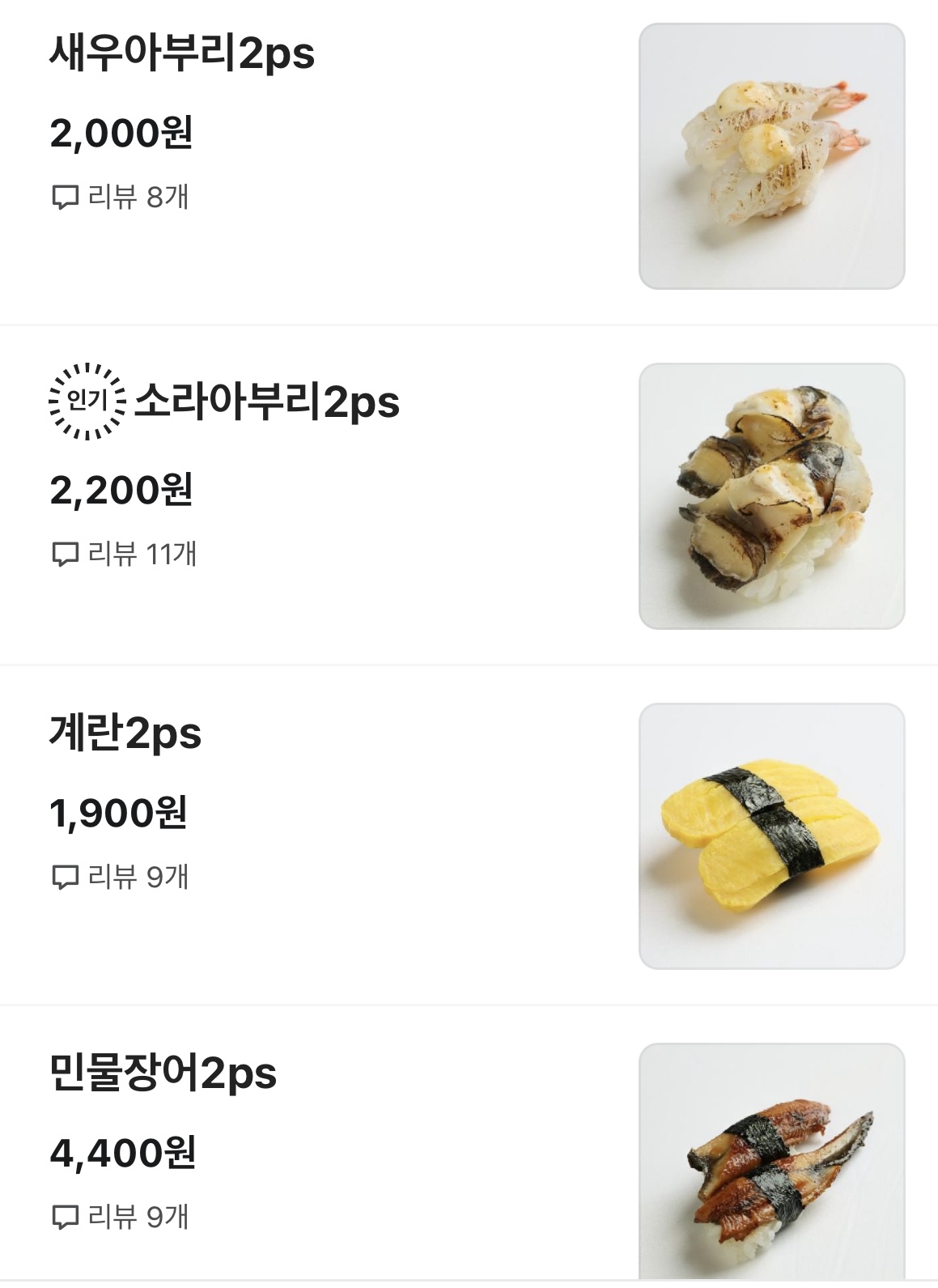 맛있어서 추가해서 먹었다. 세트메뉴에 단품으로 초밥을 추가해서 시킬 수 있다.
