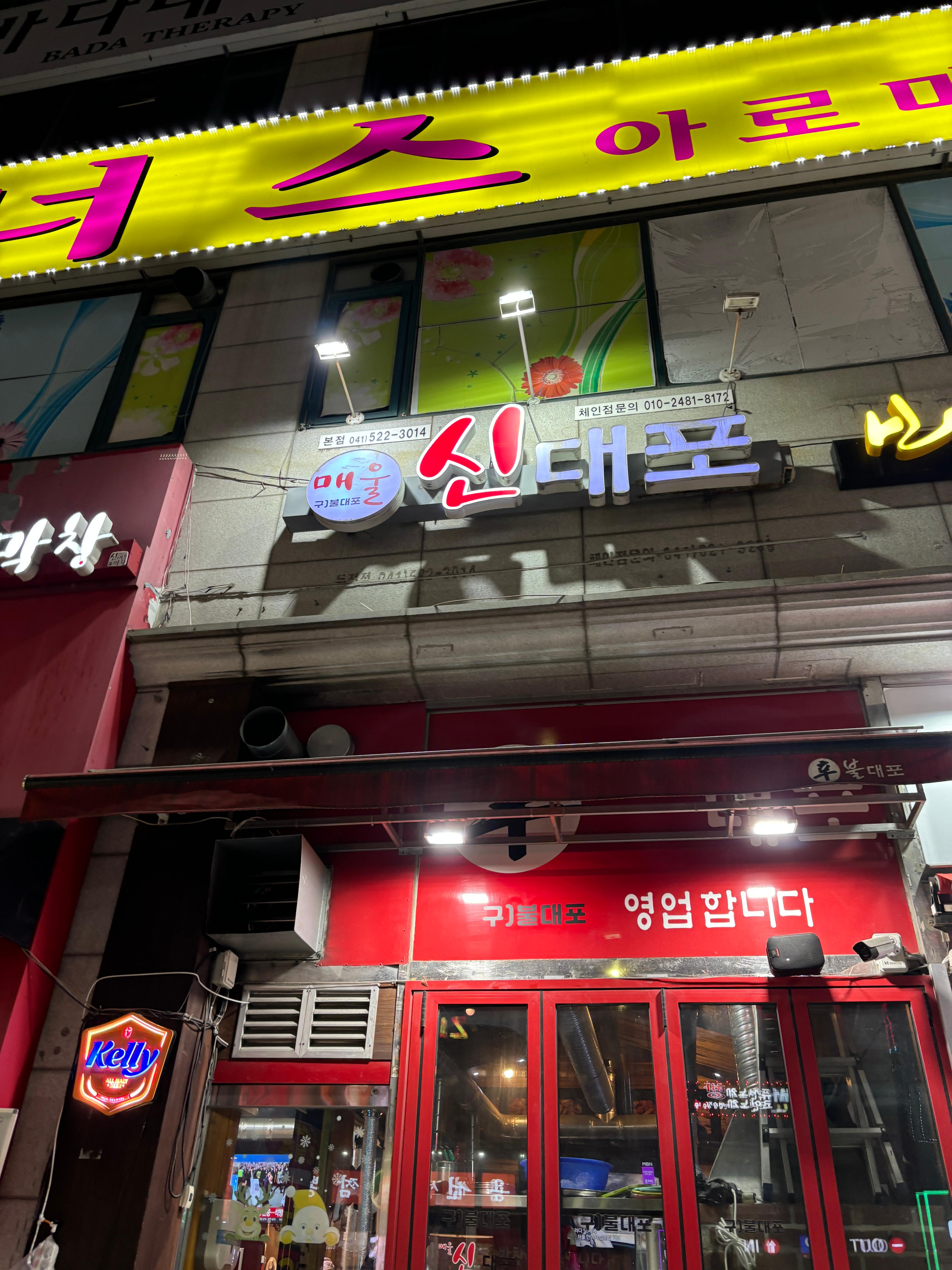 구)불대포라고 적혀있고 큰 간판에는 신대포라고 적혀있다. 들어가니 우리 자리 빼고 모두 만석이었다. 웨이팅은 생각보다 오래하지 않았다. 한 15분정도?