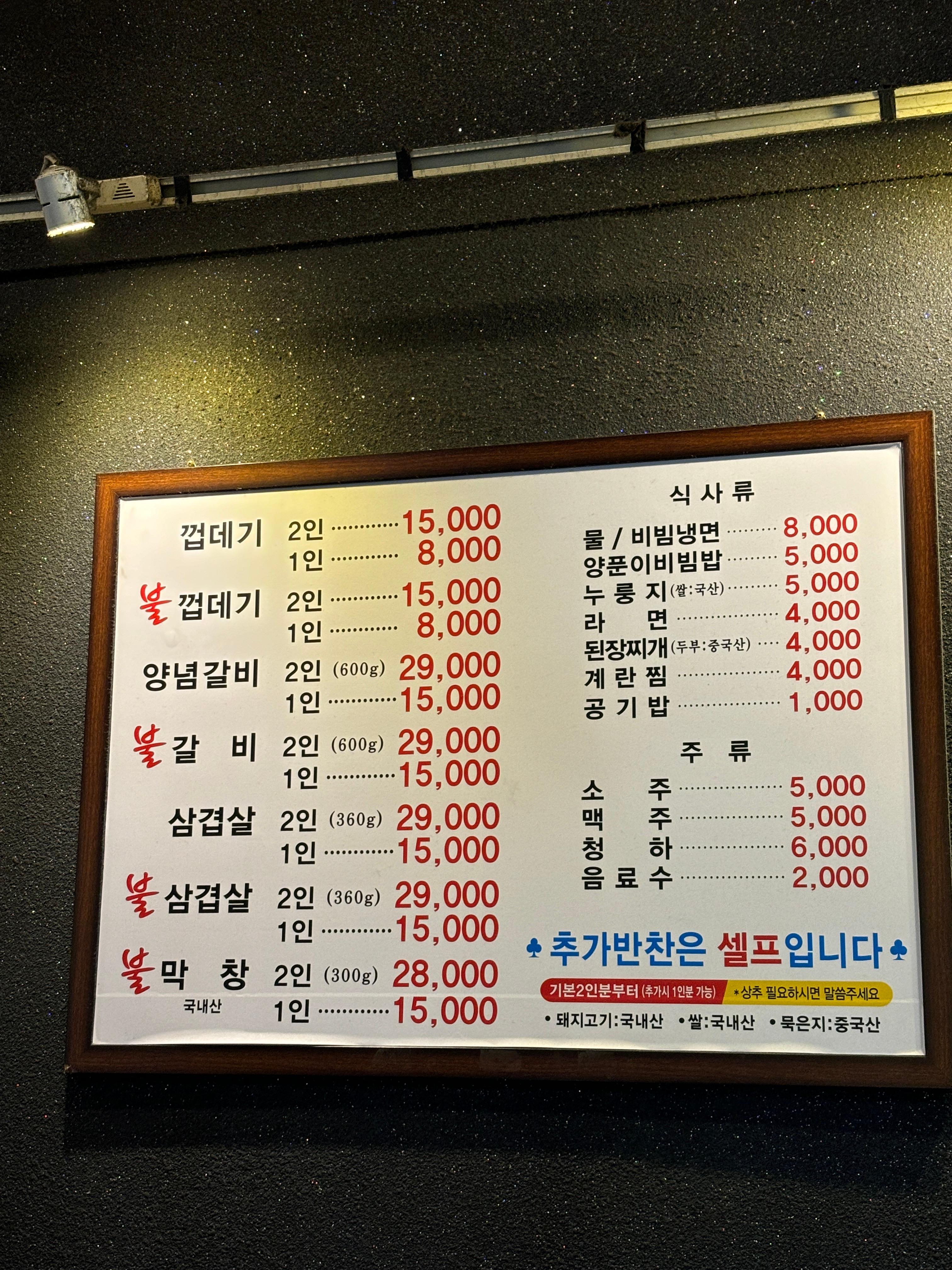 우리는 불갈비 2인분을 주문하고 너무 매울까봐 일반 껍데기도 같이 시켰다.